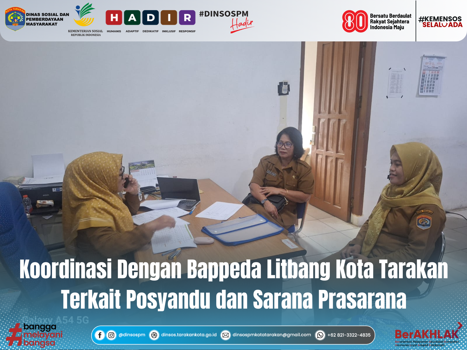Tarakan. Kepala Bidang Pemberdayaan Masyarakat Dinas Sosial dan Pemberdayaan Masyarakat Kota Tarakan, Agustina, S.K.M, Didampingi Penata Layanan Operasional Pemberdayaan Sosial, Noor Salsiah Citra Dewi, S.E, Melaksanakan Koordinasi Terkait Posyandu dan Sarana Prasarana, Pada Selasa (09/09/2025) Di Bappeda Litbang Kota Tarakan.
