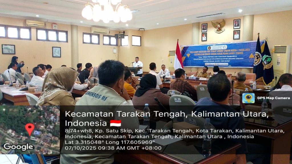 Tarakan. Plt. Sekretaris Dinas Sosial dan Pemberdayaan Masyarakat Kota Tarakan, Yang Juga Menjabat Sebagai Kepala Bidang Sosial, Drs. Jamaluddin Malla, Didampingi Pekerja Sosial Ahli Pertama, Zulfa Ilmiah Sunni, S.S.T dan Penata Layanan Operasional Kemensos RI, Kuswadi Jakaria, S.I.Kom, Menghadiri Focus Group Disscussion (FGD) Terkait Undang-Undang Nomor 1 Tahun 2023 Tentang Kitab Undang-Undang Hukum Pidana (KUHP) Terbaru, Pada Selasa (07/10/2025) Di Ruang Imbaya Kantor Wali Kota Tarakan.