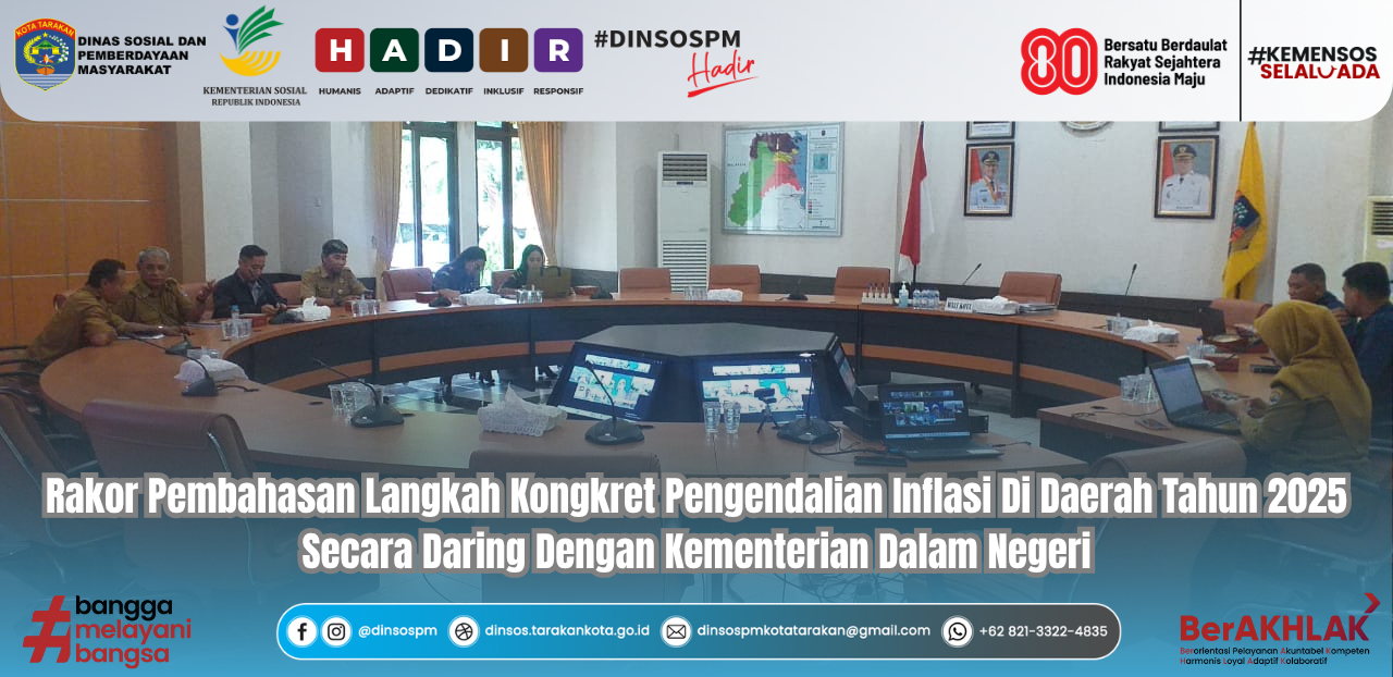 Tarakan. Plt. Sekretaris Dinas Sosial dan Pemberdayaan Masyarakat Kota Tarakan, Yang Juga Menjabat Sebagai Kepala Bidang Sosial, Drs. Jamaluddin Malla, Menghadiri Rapat Koordinasi (Rakor) Pembahasan Langkah Kongkret Pengendalian Inflasi Di Daerah Tahun 2025 Secara Daring Dengan Kementerian Dalam Negeri (Kemendagri), Pada Senin (06/10/2025) Di Ruang Rapat Wali Kota Tarakan.