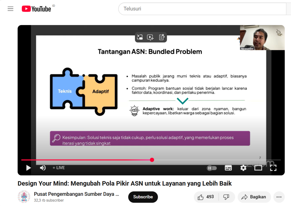 Sharing Session Dilaksanakan Oleh Badan Kepegawaian Negara Republik Indonesia (BKN RI). Narasumber : Patrya Pratama, M.P.A (Direktur Eksekutif INSPIRASI Foundation).