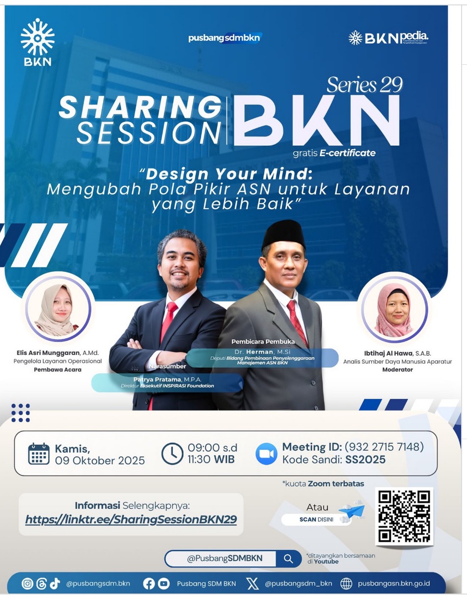 Tarakan. Kepala Sub Bagian Umum dan Kepegawaian Dinas Sosial dan Pemberdayaan Masyarakat Kota Tarakan, Afriyona Maidda, S.E., M.H, Mengikuti Kegiatan Zoom Meeting Sharing Session BKN Series 29, Dengan Tema ”Mengubah Pola Pikir ASN Untuk Layanan Yang Lebih Baik”, Pada Kamis (09/10/2025).