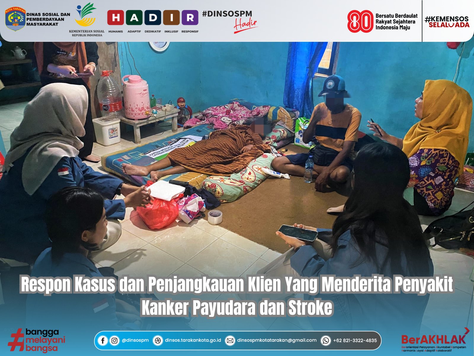 Tarakan. Pendamping Rehabilitasi Sosial (Rehsos) Dinas Sosial dan Pemberdayaan Masyarakat Kota Tarakan, Ria Octaviani, S.E, Rini Kustiwi, Agus Wahyudi, Lucky Hardyantoro dan Mahasiswa KKP UBT, Melaksanakan Respon Kasus dan Penjangkauan (Homevisit) Terkait Laporan Pengaduan Adanya Warga Yang Menderita Penyakit Kanker Payudara dan Stroke, Pada Kamis (09/10/2025) Di RT. 20 Kelurahan Kampung I Skip, Kecamatan Tarakan Tengah.