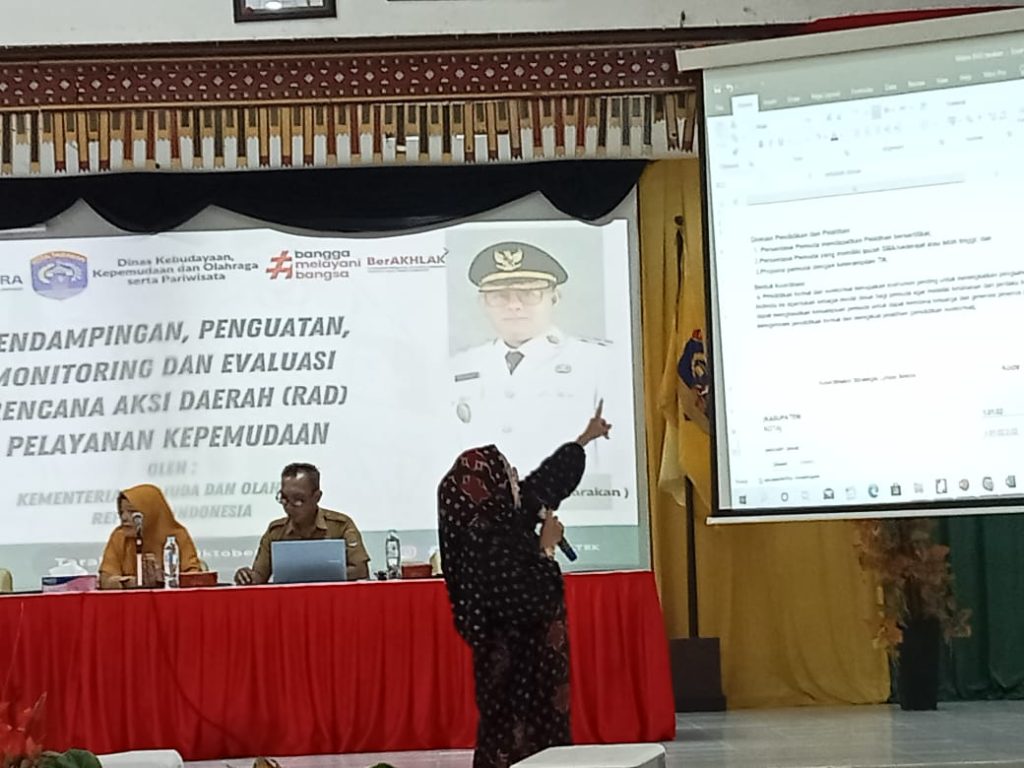 Tarakan. Kepala Sub Bagian Perencanaan dan Keuangan Dinas Sosial dan Pemberdayaan Masyarakat Kota Tarakan, Madenur, Menghadiri Hari Kedua Pendampingan, Penguatan dan Evaluasi Rencana Aksi Daerah (RAD) Pelayanan Kepemudaan Tahun 2025, Pada Selasa (14/10/2025) Di Gedung Serbaguna Kantor Wali Kota Tarakan.