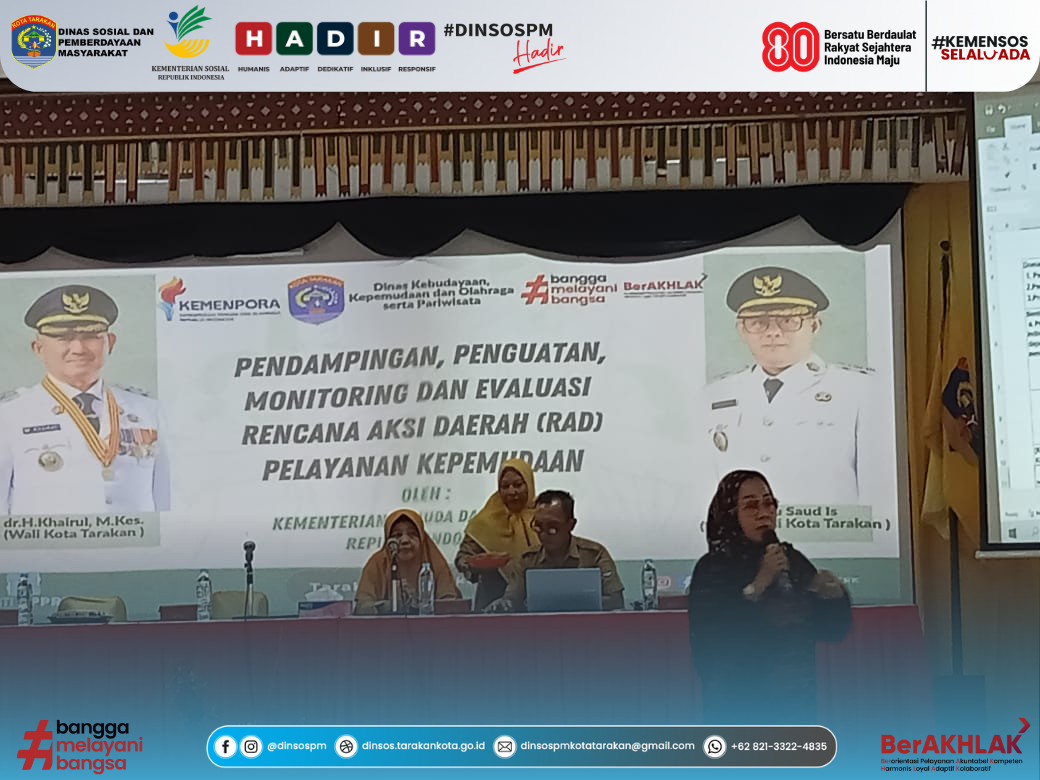 Tarakan. Kepala Sub Bagian Perencanaan dan Keuangan Dinas Sosial dan Pemberdayaan Masyarakat Kota Tarakan, Madenur, Menghadiri Hari Kedua Pendampingan, Penguatan dan Evaluasi Rencana Aksi Daerah (RAD) Pelayanan Kepemudaan Tahun 2025, Pada Selasa (14/10/2025) Di Gedung Serbaguna Kantor Wali Kota Tarakan.