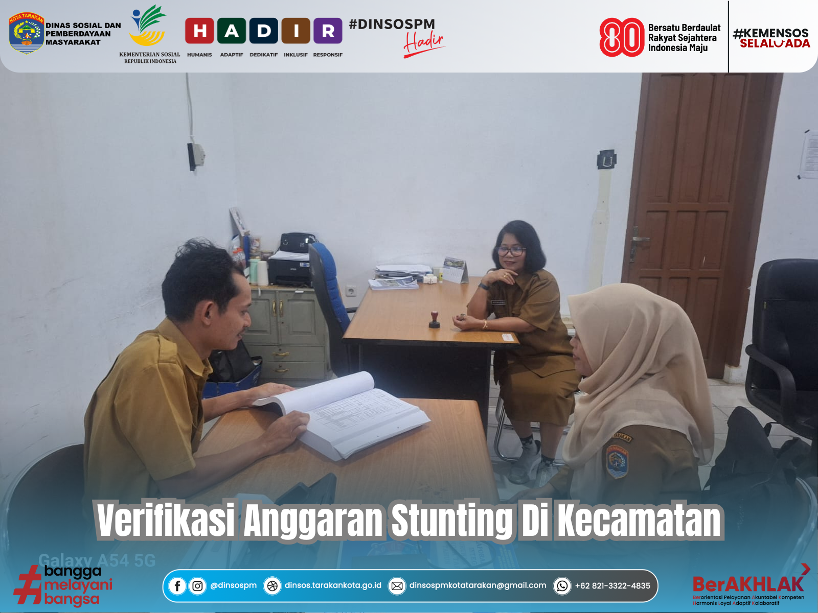 Tarakan. Kepala Bidang Pemberdayaan Masyarakat Dinas Sosial dan Pemberdayaan Masyarakat Kota Tarakan, Agustina, S.K.M, Didampingi Penata Layanan Operasional Pemberdayaan Sosial, Noor Salsiah Citra Dewi, S.E, Melaksanakan Verifikasi Anggaran Stunting Di Kecamatan, Pada Selasa (14/10/2025) Di Kantor Bappeda Litbang Kota Tarakan.