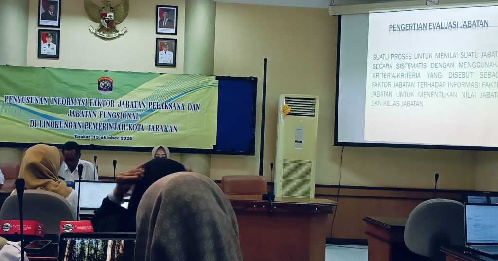 Tarakan. Pengolah Data dan Informasi Sub Bagian Umum dan Kepegawaian Dinas Sosial dan Pemberdayaan Masyarakat Kota Tarakan, Ety Suprapti, A.Md, Menghadiri Penyusunan Informasi Faktor Jabatan Pelaksana dan Jabatan Fungsional, Pada Rabu (15/10/2025) Di Ruang Imbaya Kantor Wali Kota Tarakan.