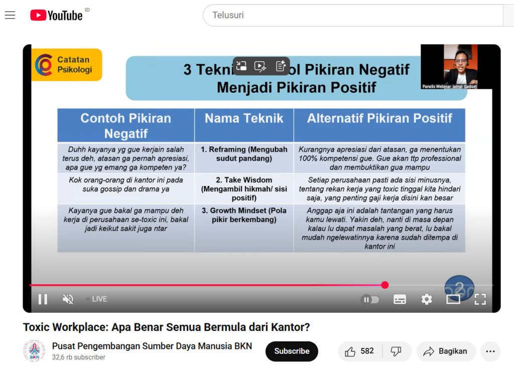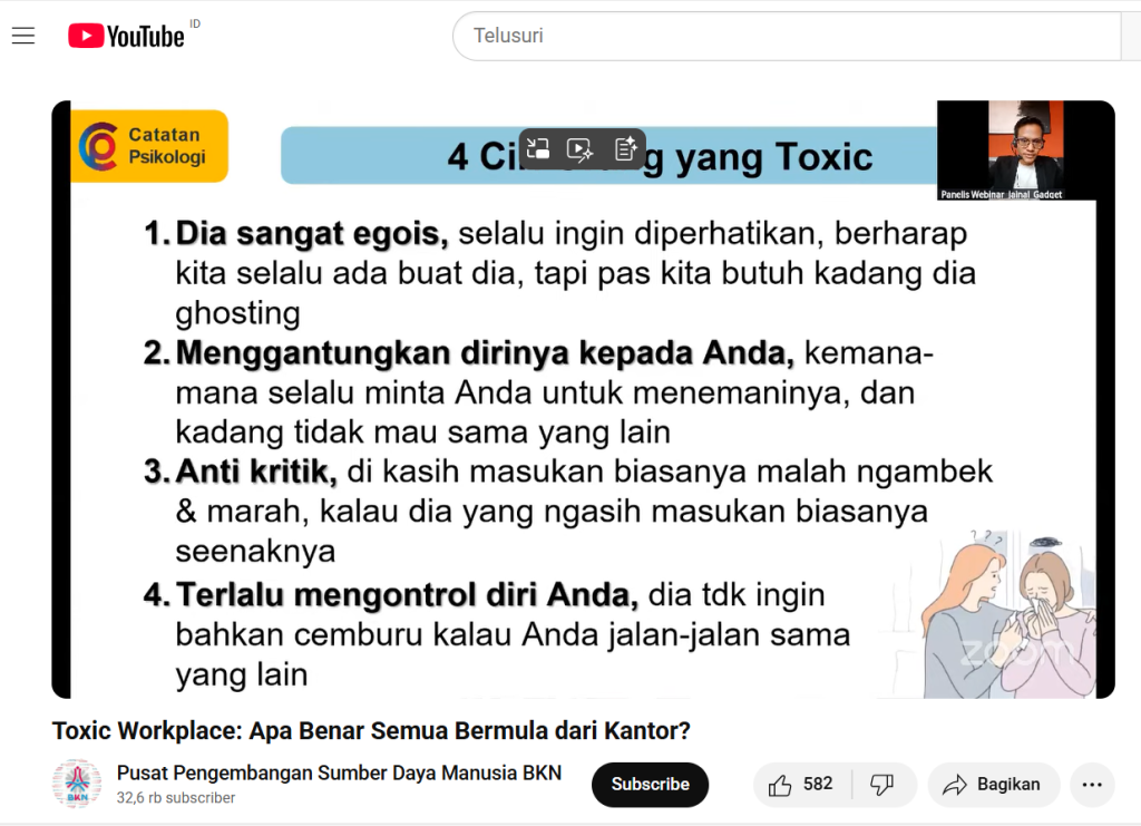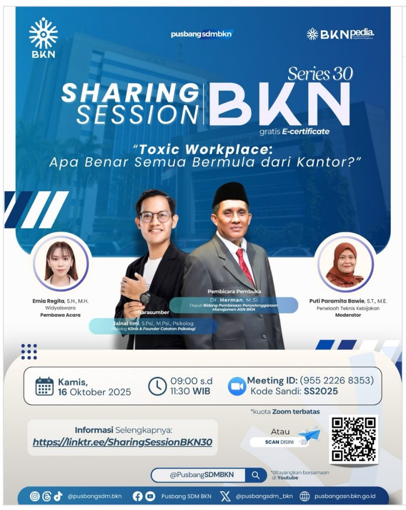 Sharing Session Dilaksanakan Oleh Badan Kepegawaian Negara Republik Indonesia (BKN RI). Narasumber : Jainal Ilmi, S.Psi., M.Psi., Psikolog., C.Ht., CT.HRNLP (Psikolog Klinis & Founder Catatan Psikologi).
