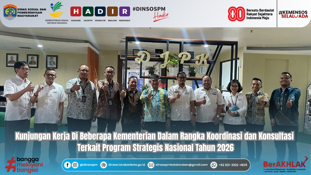 Tarakan. Kepala Dinas Sosial dan Pemberdayaan Masyarakat Kota Tarakan, Arbain, S.E., M.A.P, Mendampingi Wali Kota Tarakan, dr. H. Khairul, M.Kes, Melakukan Kunjungan Kerja Ke Beberapa Kementerian Dalam Rangka Koordinasi dan Konsultasi Terkait Program Strategis Nasional Tahun 2026 Di Kota Tarakan, Pada Senin (20/10/2025) Di Jakarta.
