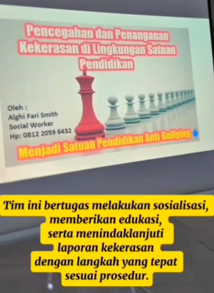 Tarakan. Pekerja Sosial Ahli Pertama Dinas Sosial dan Pemberdayaan Masyarakat Kota Tarakan, Alghi Fari Smith, S.S.T, Menghadiri Sosialisasi Pencegahan dan Penanganan Kekerasan Di Satuan Pendidikan, Pada Kamis-Jum’ at (18-19/09/2025) Di Aula SMA Negeri 1 Tarakan.