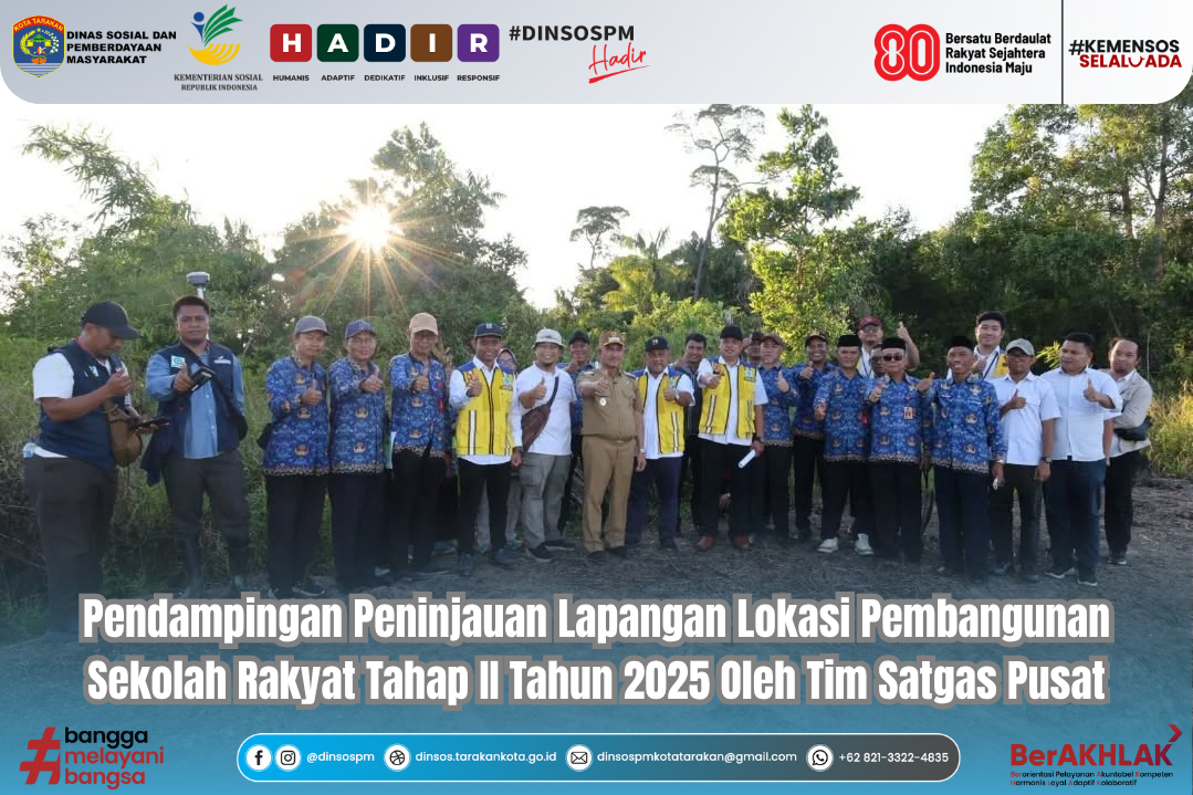 Tarakan. Kepala Dinas Sosial dan Pemberdayaan Masyarakat Kota Tarakan, Arbain, S.E., M.A.P, Menghadiri Pendampingan Peninjauan Lapangan Lokasi Pembangunan Sekolah Rakyat Tahap II Tahun 2025 Oleh Tim Satgas Pusat (Perwakilan Kementerian Pekerjaan Umum), Pada Senin (17/11/2025) Di Jalan Sabindo Kelurahan Juata Laut, Kecamatan Tarakan Utara.
