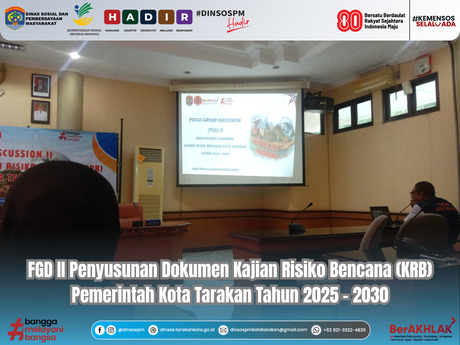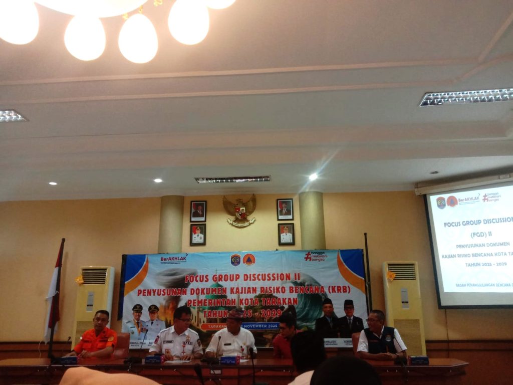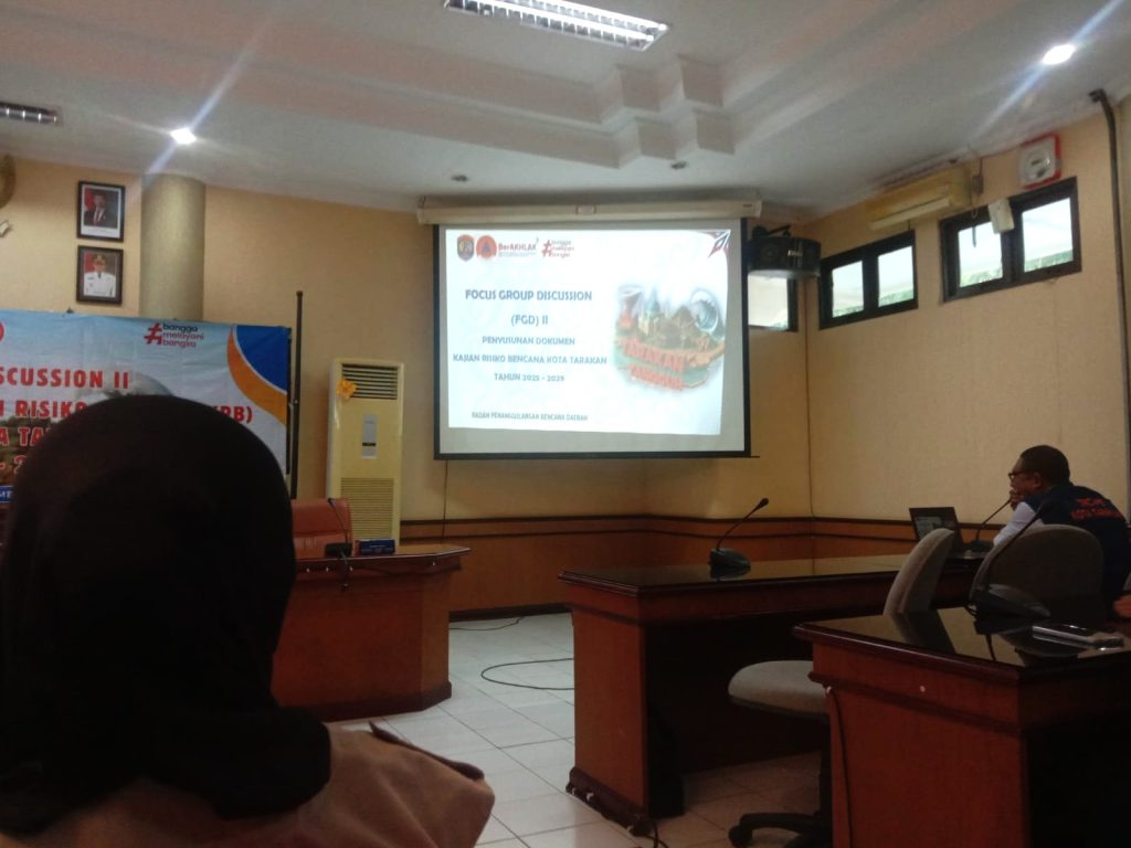 Tarakan. Penyuluh Sosial Ahli Muda Dinas Sosial dan Pemberdayaan Masyarakat Kota Tarakan, Ir. Rosmala, Menghadiri Focus Group Discussion (FGD) II Penyusunan Dokumen Kajian Risiko Bencana (KRB) Pemerintah Kota Tarakan Tahun 2025-2030, Pada Rabu (12/11/2025) Di Ruang Imbaya Kantor Wali Kota Tarakan.
