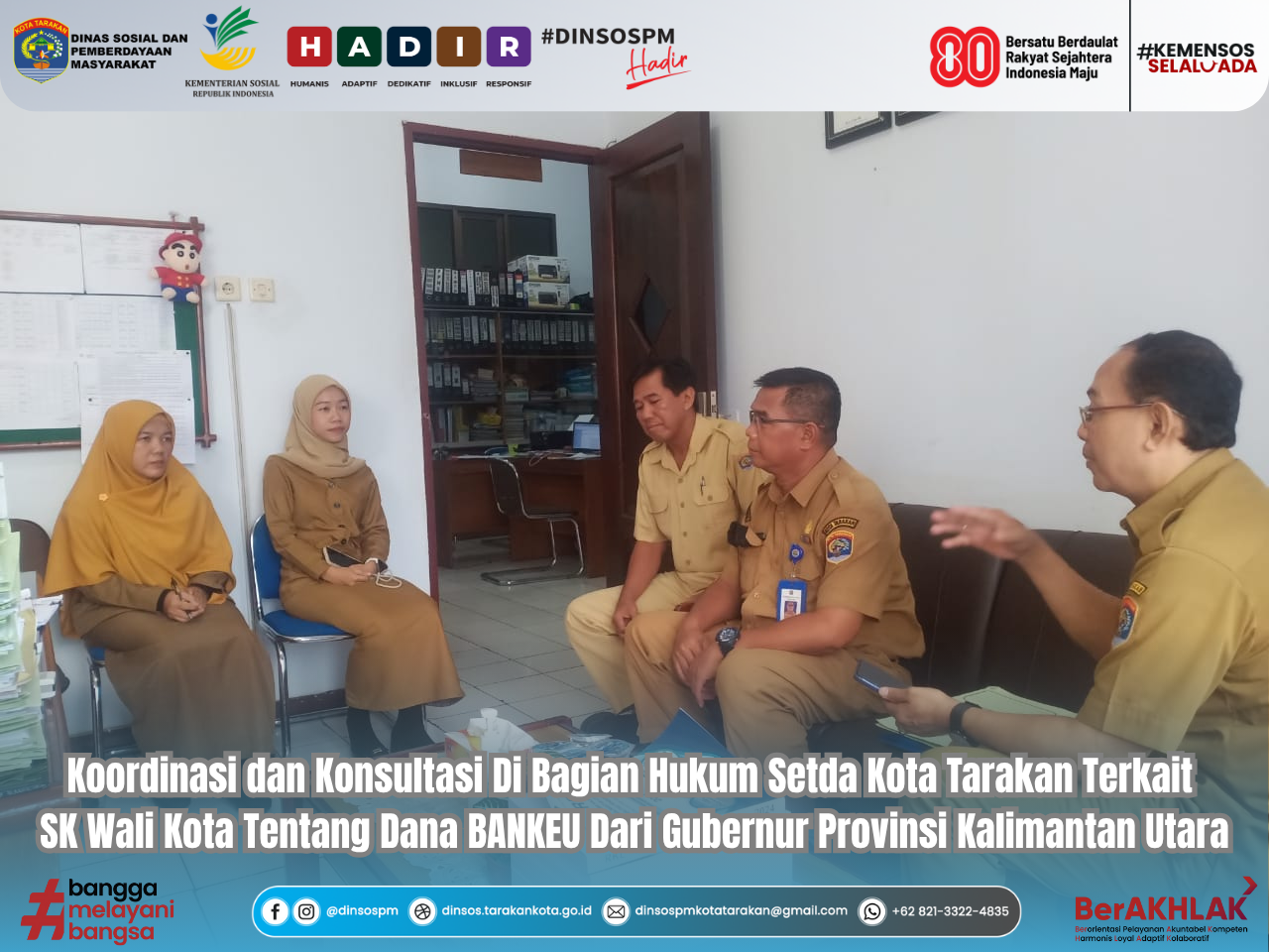 ASNberAKHLAK #banggamelayanibangsa #TarakanHIBOT (Hebat, Inovatif, Berbudaya, Unggul, Tangguh) #Facebook : Dinas Sosial Pemberdayaan Masyarakat #Instagram : dinsospm