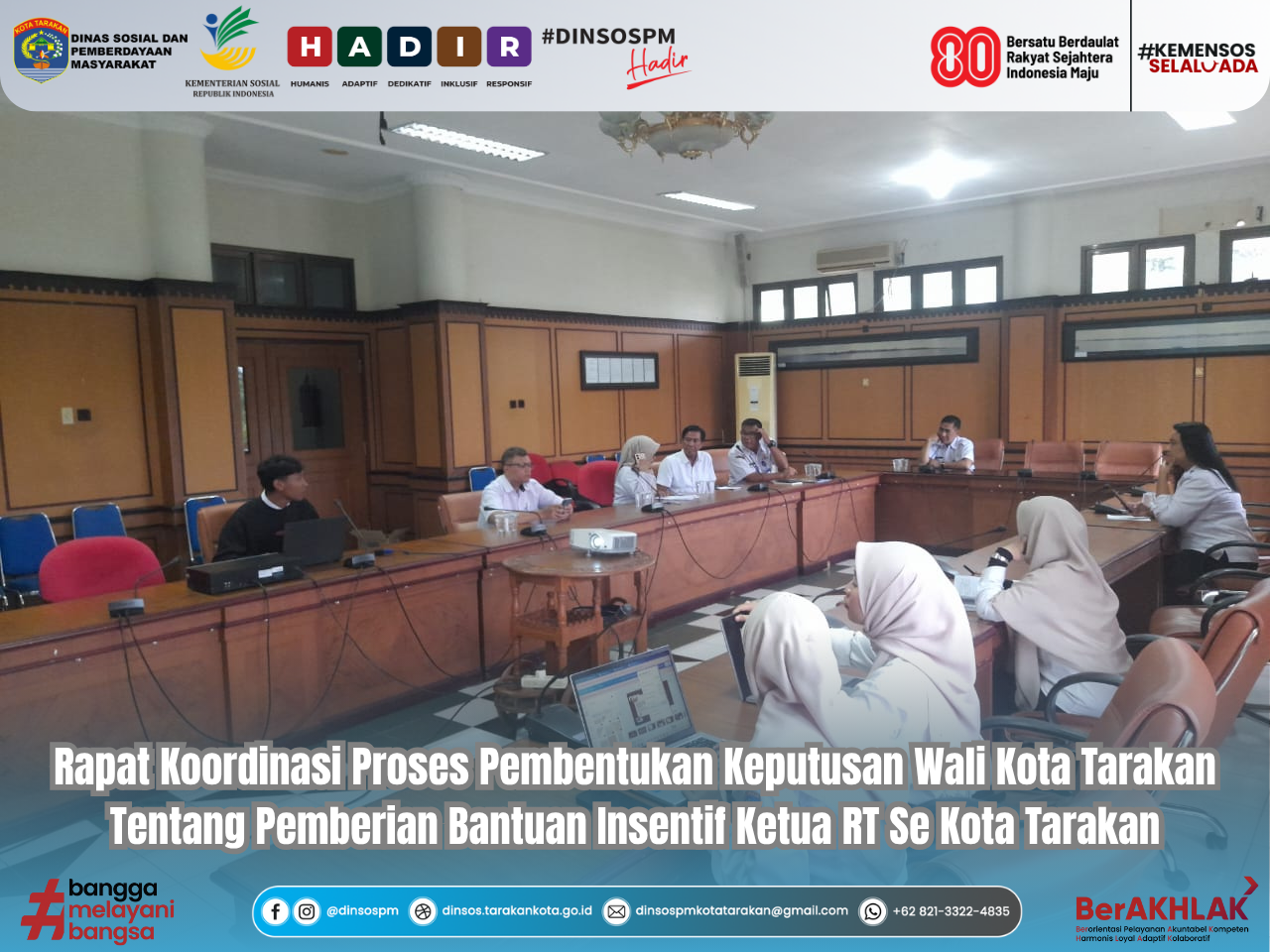 Tarakan. Kepala Bidang Pemberdayaan Masyarakat Dinas Sosial dan Pemberdayaan Masyarakat Kota Tarakan, Syafaruddin, S.E, Didampingi Penelaah Teknis Kebijakan Bidang Pemberdayaan Masyarakat, Yusuf Prasetyo, S.E, Menghadiri Rapat Koordinasi (Rakor) Proses Pembentukan Keputusan Wali Kota Tarakan Tentang Pemberian Bantuan Insentif Ketua RT Se Kota Tarakan Sumber Anggaran Bantuan Keuangan Pemerintah Provinsi Kalimantan Utara, Pada Rabu (12/11/2025) Di Ruang Kenawai Kantor Wali Kota Tarakan.
