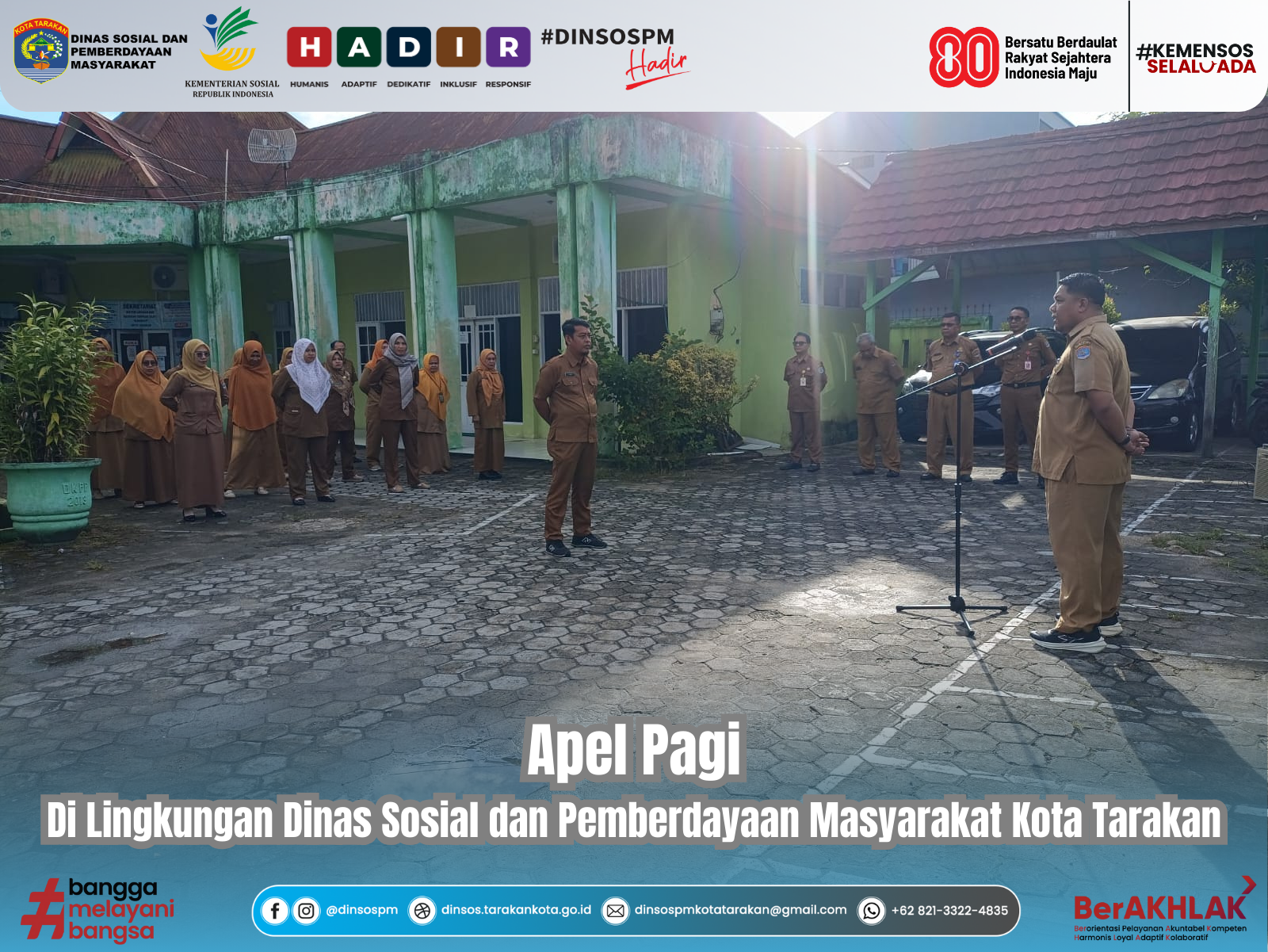 Tarakan. Pelaksanaan Apel Pagi Dinas Sosial dan Pemberdayaan Masyarakat Kota Tarakan, Yang Diikuti ASN (PNS, PPPK Kemensos RI/Daerah) dan Non ASN (Tenaga Kontrak), Serta Siswa Magang SMK Negeri 4 dan SMK Negeri 1 Tarakan, Pada Senin (24/11/2025).