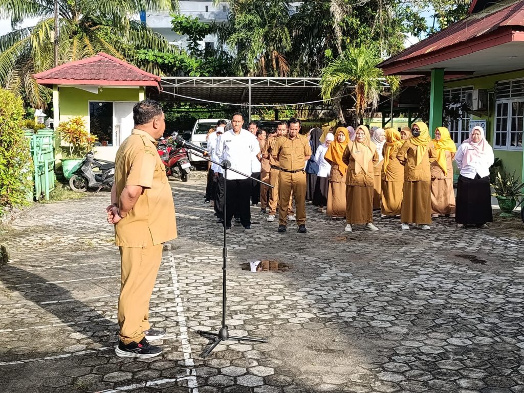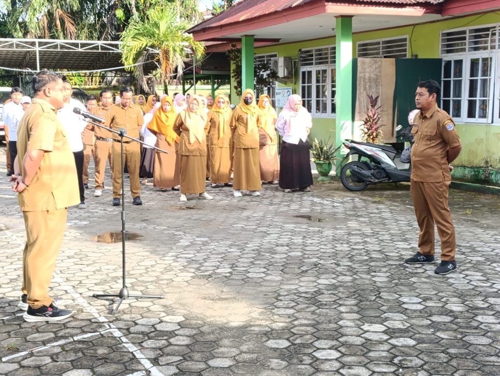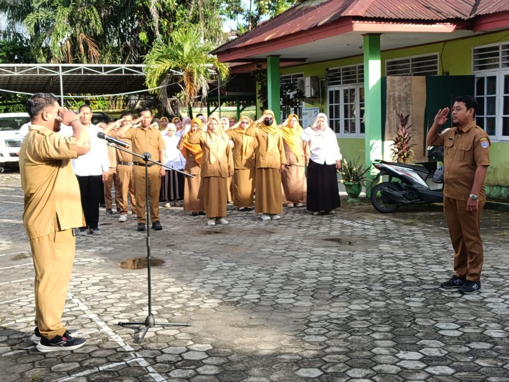 Pembina Apel Pagi, Afriyona Maidda, S.E., M.H (Kepala Sub Bagian Umum dan Kepegawaian) dan Komandan Apel Pagi, Agus Wahyudi (PPPK).