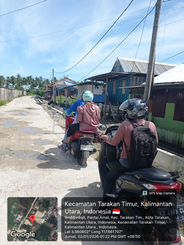 Dinsos PM Kota Tarakan melaksanakan Dinsos PM Kota Tarakan melaksanakan assessment pengajuan PBI Daerah atas nama Muhammad Taufik yang beralamat di Ello, Kelurahan Kampung 1 Skip, wilayah perbatasan dengan Binalatung Pantai Amal. Kegiatan ini merupakan bagian dari proses verifikasi calon penerima bantuan sesuai ketentuan yang berlaku.