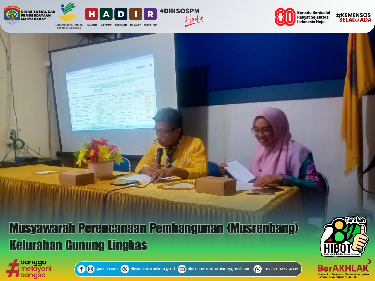 ASNberAKHLAK #banggamelayanibangsa #TarakanHIBOT (Hebat, Inovatif, Berbudaya, Unggul, Tangguh) #Facebook : Dinas Sosial Pemberdayaan Masyarakat #Instagram : dinsospm
