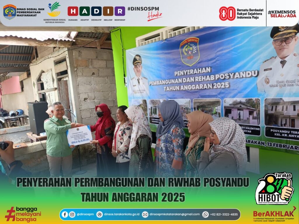 Melalui Dinsos PM, Pemerintah Kota Tarakan pada Tahun Anggaran 2025 telah melaksanakan rehabilitasi terhadap enam Posyandu di beberapa wilayah Kota Tarakan. Langkah ini menjadi bagian dari upaya berkelanjutan dalam meningkatkan kualitas layanan sosial dan kesehatan masyarakat di tingkat kelurahan.