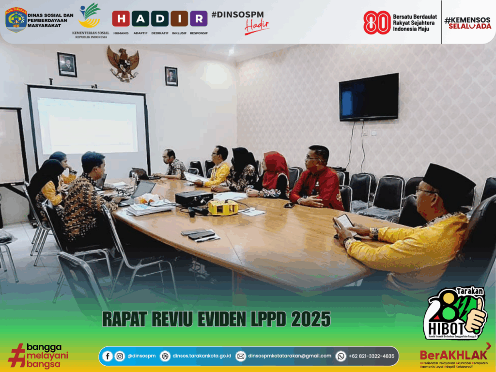 Tarakan – Kamis, 26 Februari 2026, Dinas Sosial dan Pemberdayaan Masyarakat Kota Tarakan menghadiri rapat Pelaksanaan Reviu Eviden/Data Pendukung LPPD Tahun 2025 yang digelar di Ruang Rapat Dinsos PM.