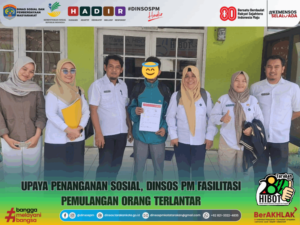 Tarakan – Dinas Sosial dan Pemberdayaan Masyarakat Kota Tarakan melaksanakan fasilitasi pemulangan orang terlantar sebagai bagian dari upaya penanganan dan perlindungan sosial bagi masyarakat yang membutuhkan.