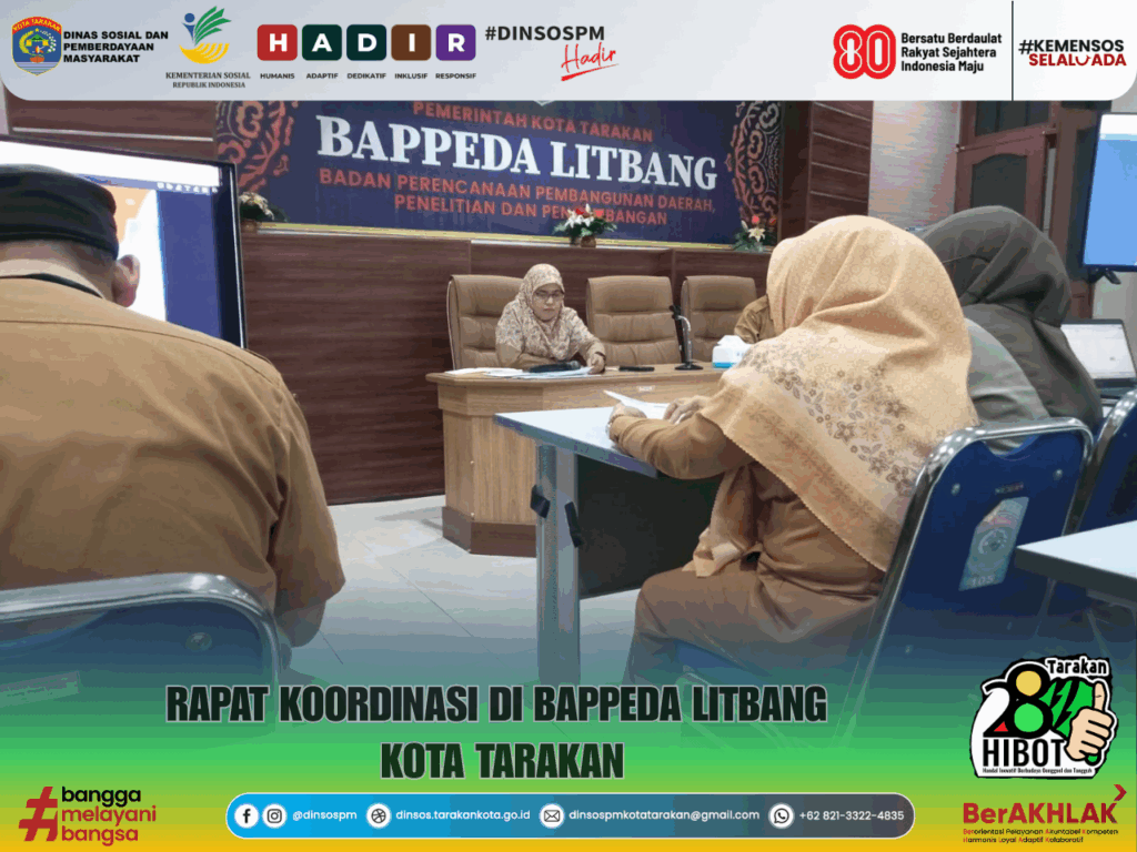 Tarakan – Perwakilan Dinas Sosial dan Pemberdayaan Masyarakat Kota Tarakan menghadiri rapat koordinasi yang diselenggarakan oleh Bappeda Litbang Kota Tarakan pada Selasa, 3 Maret 2026, bertempat di Ruang Rapat Bappeda Litbang Kota Tarakan.